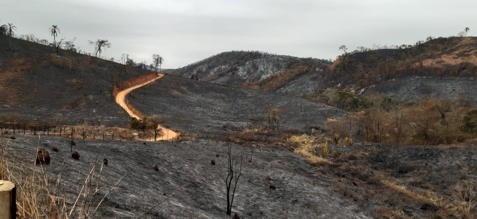 CARATINGA- Um cenário de destruição após um incêndio que atingiu uma extensa área de pastagem que teve início no distrito de Dom Lara e seguiu em direção a Dom Modesto.