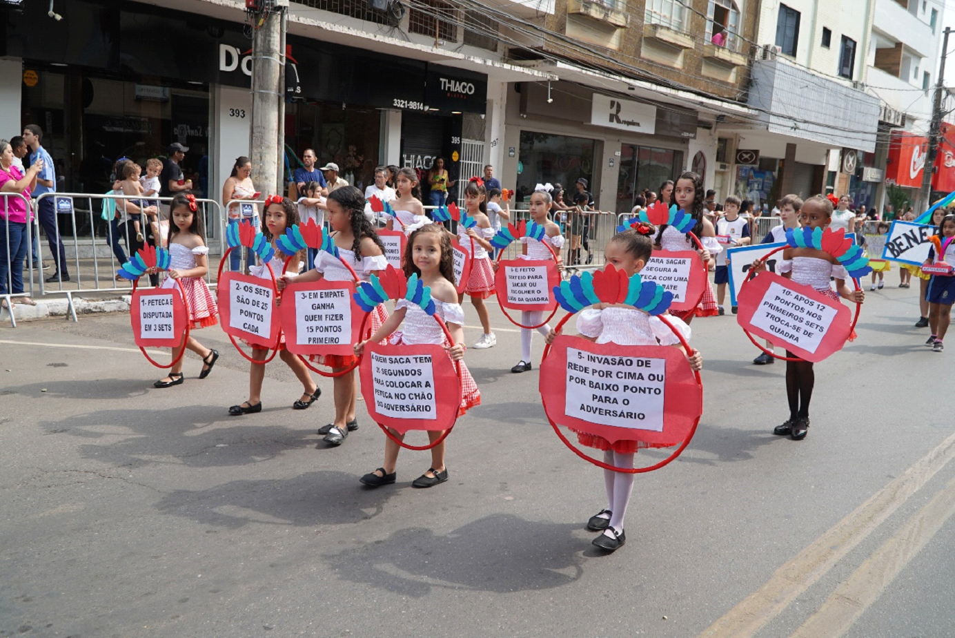 As escolas e instituições da cidade apresentaram um desfile cívico com o tema “História do Esporte no Brasil”. Cada escola ficou responsável por representar uma modalidade esportiva, proporcionando ao público uma rica diversidade de apresentações, que incluíram futebol de campo, futebol de rua, natação, vôlei, atletismo, taekwondo, queimada, skate, ginástica artística, dança, capoeira, jiu-jitsu, vôlei de praia, peteca, basquete, entre outras.