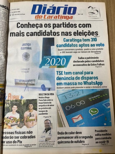 Com suas edições e manchetes impactantes, o Diário continua a ser, mais do que um jornal, uma parte fundamental da identidade de Caratinga. Em sua edição 8.465, o Diário reafirma sua missão de contar as histórias da cidade, seja com a seriedade dos tempos de crise ou com a leveza das vitórias conquistadas. Para Caratinga, o Diário é mais do que uma publicação; é um reflexo de sua alma.