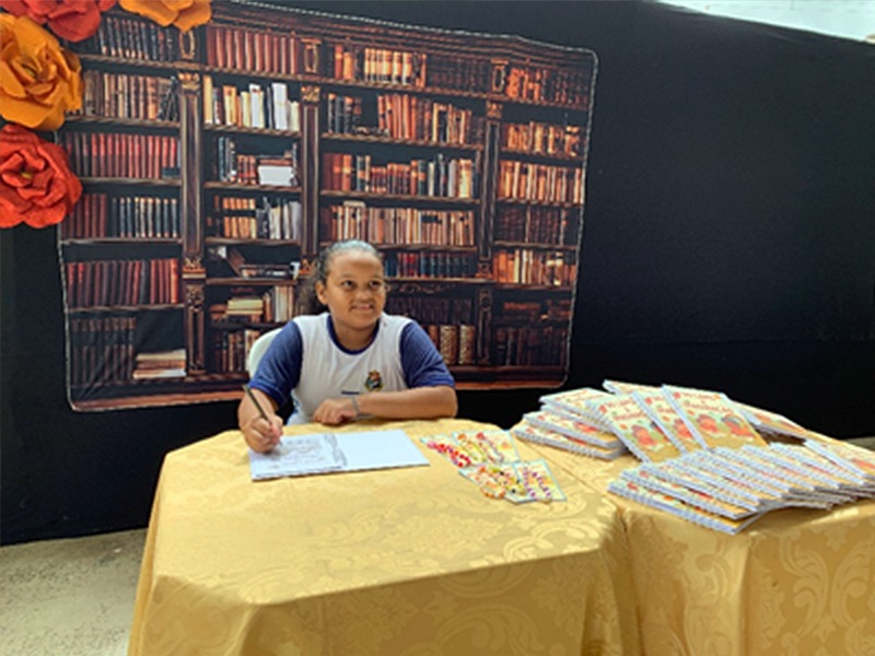 Para ela, o momento é de celebração e orgulho. “E hoje, nós estamos fazendo a culminância desse projeto, entregando para a nossa comunidade, para a nossa escola, os livros, os textos dos alunos, através desse livro pronto. Então, assim, muito gratificante para nós, um orgulho saber que nossos alunos estão escrevendo bem. Isso faz parte da leitura que nós temos na escola, desenvolvimento da escola com a educação melhor, de qualidade, dos nossos alunos”.