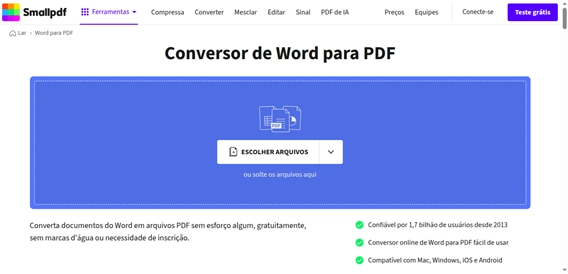 Hoje já existem muitos sites responsivos que oferecem o recurso de conversão online. A formatação é bem simples, como propõe o Smallpdf, uma ferramenta para editar arquivos PDF diretamente no navegador.