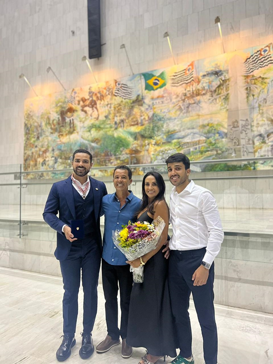 Dr. Gustavo Sá recebeu a maior honraria da Assembleia Legislativa do Estado de São Paulo, que é o colar de honra ao méritoDr. Gustavo Sá, Ronaldo (pai), Silvana (mãe) e Dr. Guilherme (irmão)