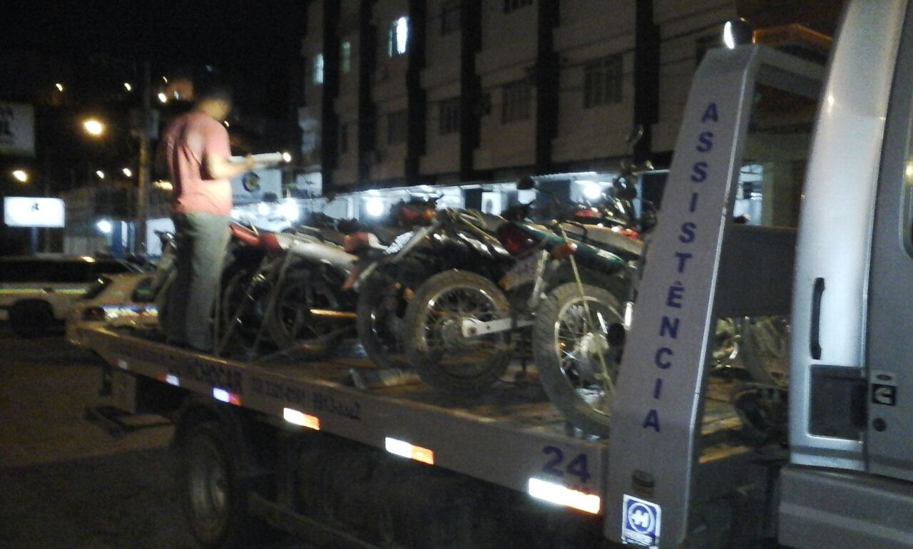 Durante a operação, Luiz Carlos Tiago, 19 anos, foi conduzido à delegacia de Polícia Civil por não acatar a ordem de parada da PM e sua moto foi apreendida por estar com o lacre rompido.