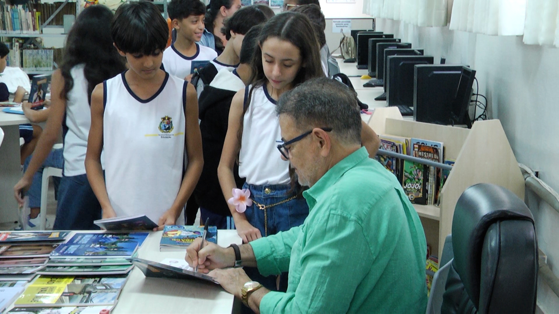 Diante de tanto carinho, o escritor, professor Eugênio Maria Gomes, se emocionou: “Nossa, eu estou muito impressionado. Aqui eu encontrei tantas crianças especiais e cheias de sonhos. Quando me deparo com o Igor, por exemplo, que disse que quer ser escritor, eu me emociono. Então, é um momento muito rico, onde nós vemos esses pequenos estudando, lendo livros e aprendendo. E tudo isso acontecendo nesta biblioteca maravilhosa, do município, que, inclusive, as pessoas precisam conhecer e apoiar.”