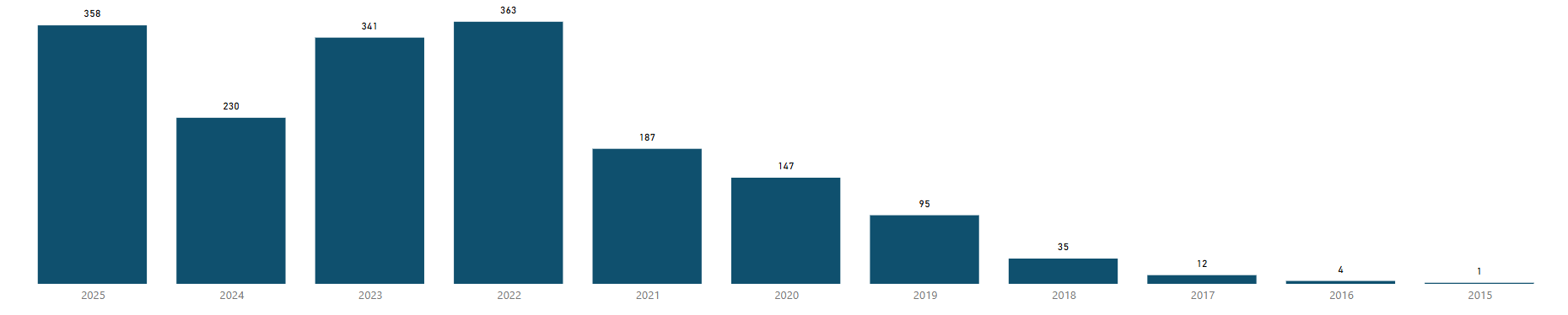O avanço da energia solar em Caratinga fica evidente ao observar a quantidade anual de conexões. Em 2025, foram registrados 358 novos sistemas, enquanto 2024 somou 230 conexões. O pico de crescimento ocorreu em 2022, com 363 novas unidades, demonstrando a consolidação da tecnologia no município