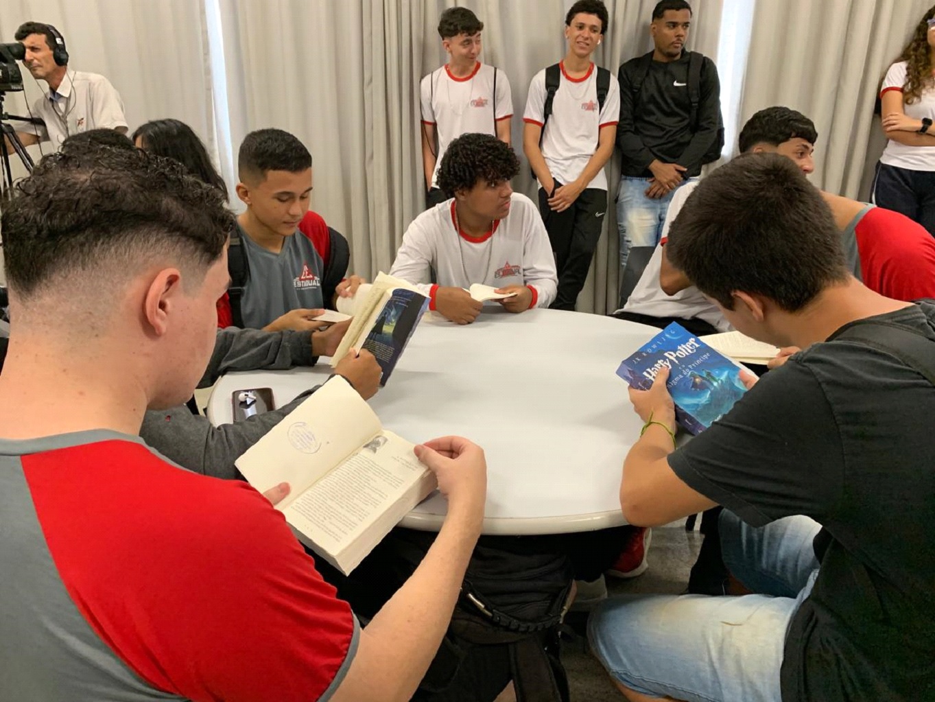 Recebidos com aplausos, as portas se abriram para o conhecimento. Os alunos visitaram a biblioteca no primeiro dia de aula, o que demonstra a vontade de aprender.
