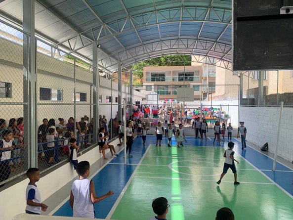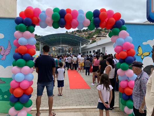 A coordenadora pedagógica Roselani Cristina Batista lembrou o percurso da construção da escola, ressaltando o esforço conjunto da gestão pública e da comunidade: “A escola começou na gestão passada com o projeto Mãos Dadas. Foi inaugurada no fim do ano passado, mas passou por melhorias para receber bem os alunos. A escola unificou duas unidades: a antiga Branca de Neve e a que funcionava junto à escola estadual Sinfrônio Fernandes. Hoje, contamos com 414 alunos, de 4 a 11 anos. Essa escola representa um novo patamar para o bairro. Nunca tivemos uma estrutura como essa aqui.”