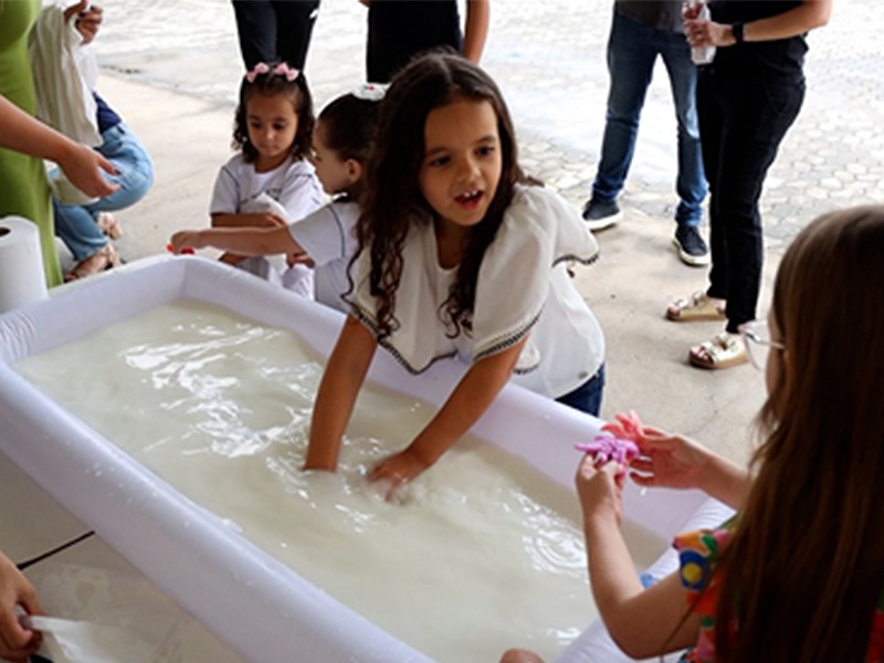 O evento é resultado de meses de atividades realizadas com as turmas do Minimaternal 1 e 2, que têm entre 0 e 3 anos. Durante o ano letivo, os pequenos foram convidados a explorar o mundo a partir dos cinco sentidos – tato, olfato, visão, paladar e audição –, elementos fundamentais para o desenvolvimento integral nessa faixa etária.