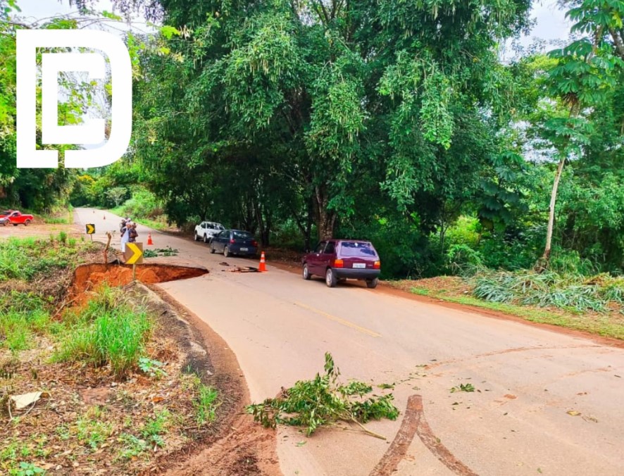Devido às fortes chuvas que assolaram a região na madrugada desse sábado(23), parte da pista de rolamento da Rodovia MG- 425 cedeu na altura do km 67.