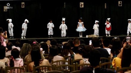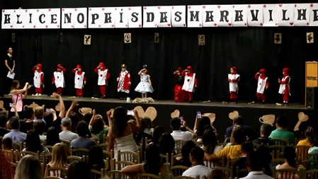 CARATINGA – Os alunos do maternal da Escola Professor Jairo Grossi, mantida pela Fundação Educacional de Caratinga, apresentaram a peça teatral “Alice no País das Maravilhas”, encerrando o projeto “Teatro na Escola”, desenvolvido ao longo deste ano. O Ginásio Dário da Anunciação Grossi se transformou em um palco de muita criatividade e imaginação.