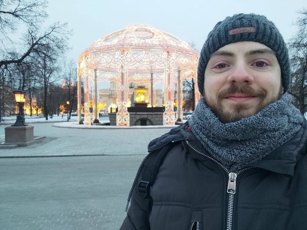 Estou na Rússia há cinco anos e meio, cheguei primeiro para fazer curso de idiomas, não conhecia nada do idioma, não conseguia falar nada, e fiz um ano, depois entrei no mestrado em Estudos Socioeconômicos da Rússia, foi divertido e muito difícil. Agora estou fazendo doutorado, estou no último ano, e Economia.