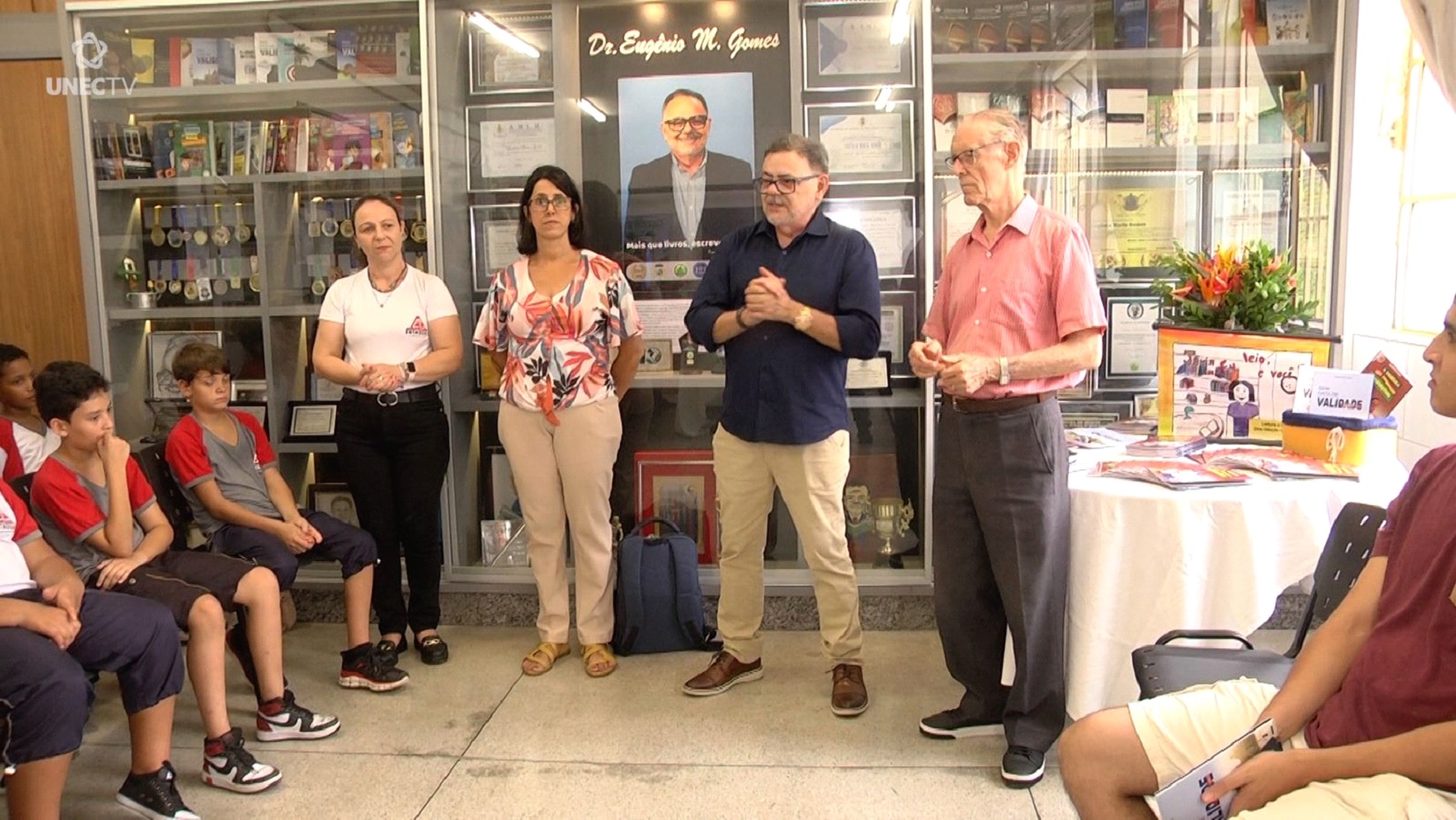 Alunos conhecem escritor Professor Eugênio em lançamento de obras