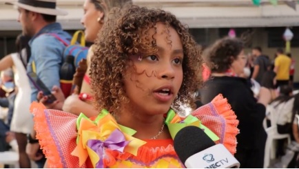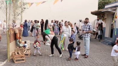 A aluna de 10 anos, Ana Valentina Vitoriano, estava com um figurino impecável: vestido de festa junina, fitas e até a maquiagem tinha bandeirolas nos olhos. “A gente dançou a música ‘Galera do Chapéu’! Foi tudo muito divertido – desde os ensaios até a apresentação”.