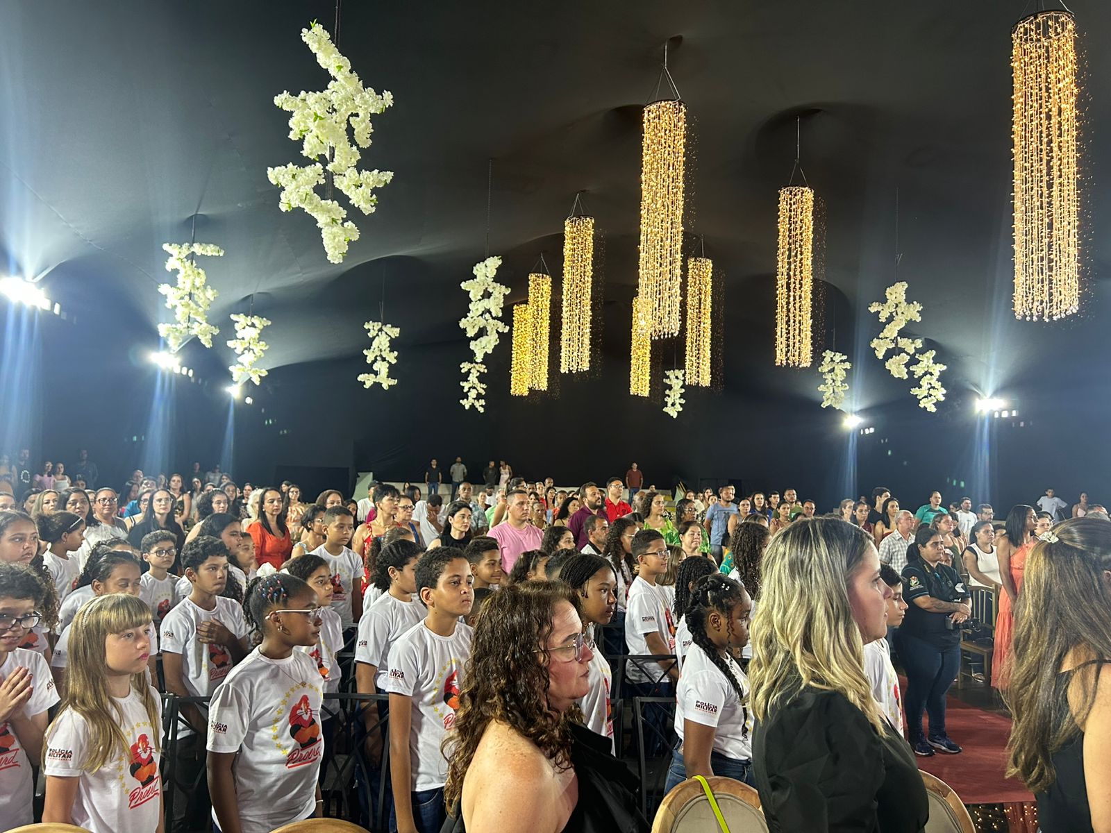 A cerimônia reuniu os 128 formandos das escolas municipais Barquinho Amarelo e Nossa Senhora do Carmo