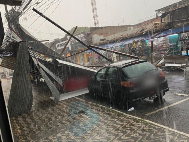 O município de Coronel Fabriciano foi atingido pela forte chuva registrada no fim da tarde desta quinta-feira (30). O Instituto Nacional de Meteorologia (Inmet) havia emitido um alerta, informando que poderia haver chuvas entre 20 e 30 mm/h ou até de 50 mm/dia. Um vídeo que circula nas mídias sociais, mostra uma estrutura caída sobre veículos e interditando a rua Maria Matos, no Centro da cidade. A princípio, não houve feridos. O balanço oficial da Defesa Civil será divulgado posteriormente. Orientações O Inmet orienta que, em caso de rajadas de ventos, as pessoas não se abriguem debaixo de árvores, pois há leve risco de queda e descargas elétricas e não estacione veículos próximos a torres de transmissão e placas de propaganda. Em caso de emergências ou necessidade de obter mais informações, a Defesa Civil (telefone 199) e ao Corpo de Bombeiros (telefone 193) podem ser acionados.