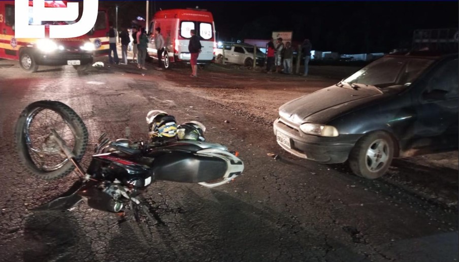 A colisão lateral envolveu uma motocicleta e um veículo de passeio.