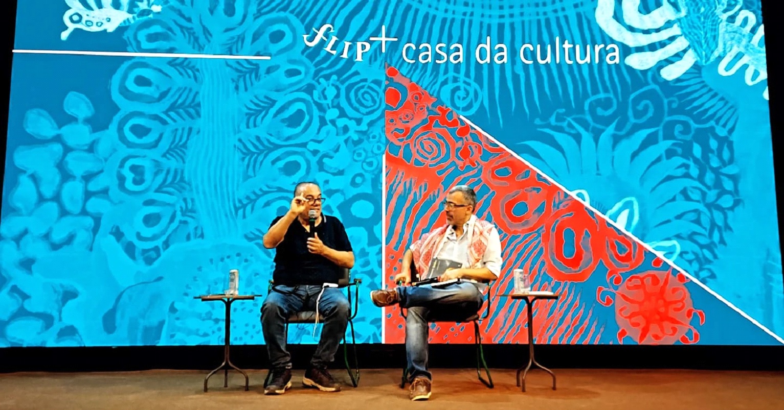 Jamil Chade estava acompanhado de Atef Abu Saif – escritor e ex-ministro da Cultura da Palestina, que veio ao Brasil lançar o livro “Quero estar acordado quando morrer” (Ed. Elefante”).