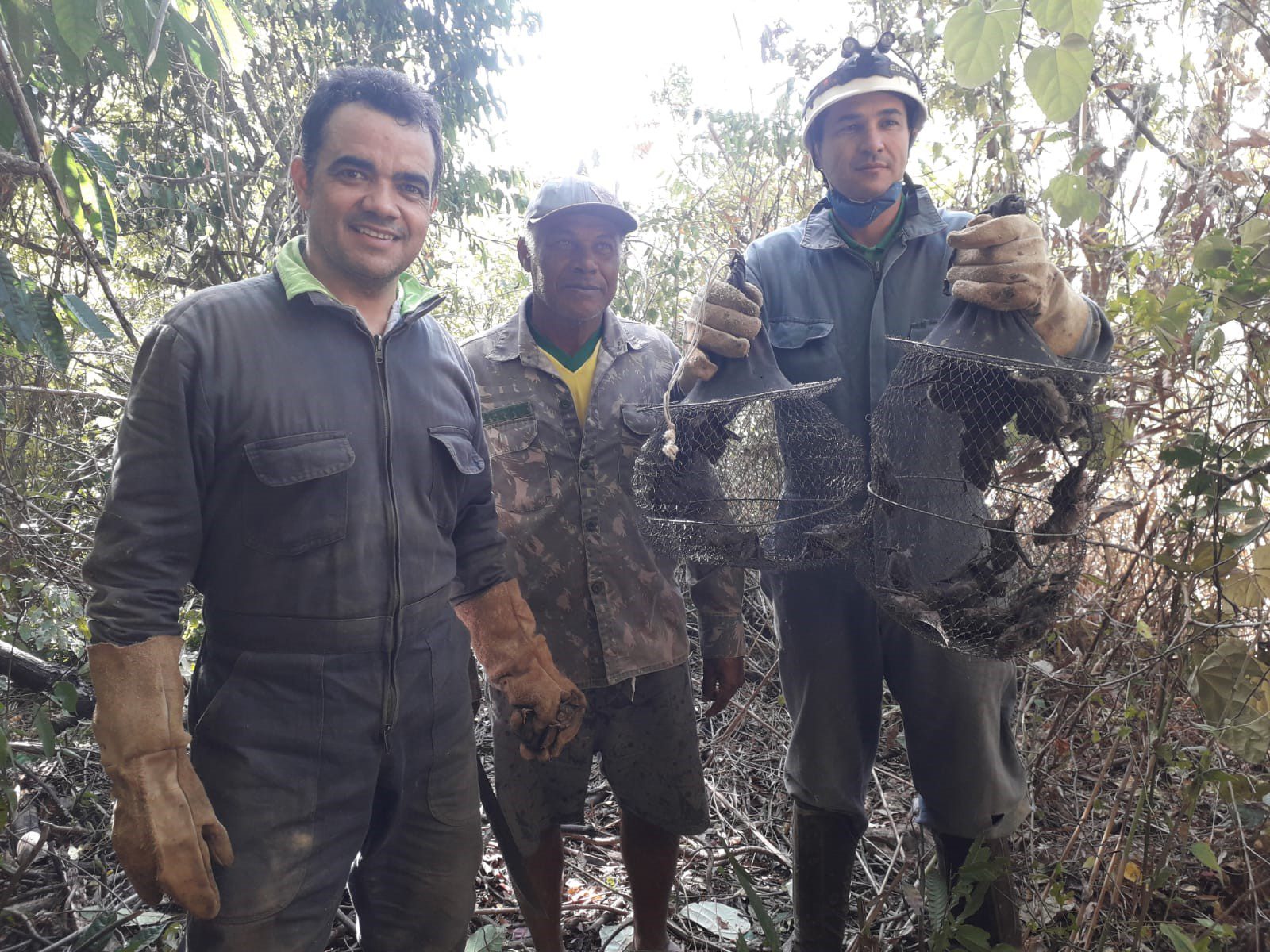 Para realização da captura, a equipe utiliza todos os equipamentos de proteção, tais como capacete, macacão, luva, máscara e bota.