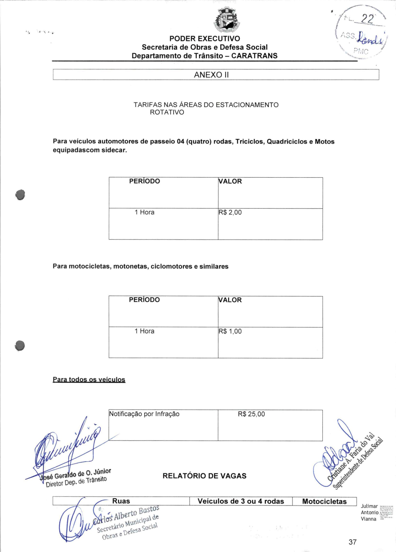 O período máximo de permanência será de duas horas. Cada hora para veículos de quatro rodas, triciclos, quadriciclos e motos equipadas com side car terá o valor de R$ 2. Já Motocicletas, motonetas, ciclomotores e similares, o valor de R$ 1.