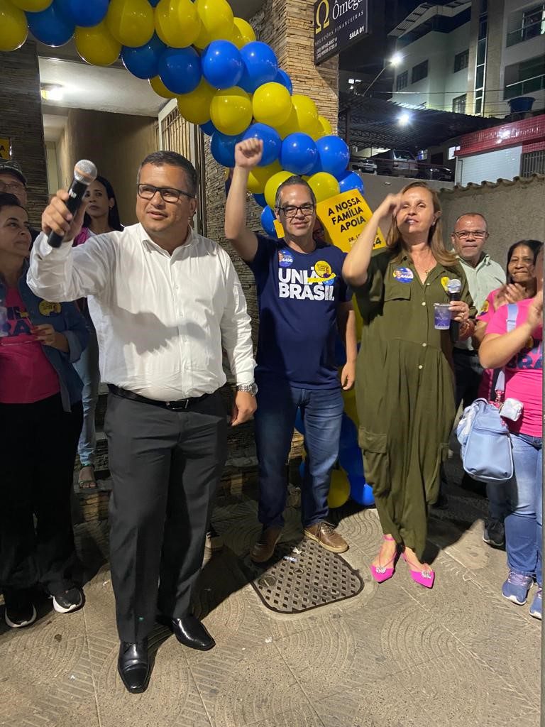CARATINGA – Nessa última sexta-feira (9), o médico caratinguense e candidato a deputado estadual pelo partido União Brasil, inaugurou o seu comitê de campanha na Praça Cesário Alvim, número 98, sala 3. O candidato estava acompanhado da esposa Karina de Paula Damião Condé e dos filhos Augusto e Henrique.