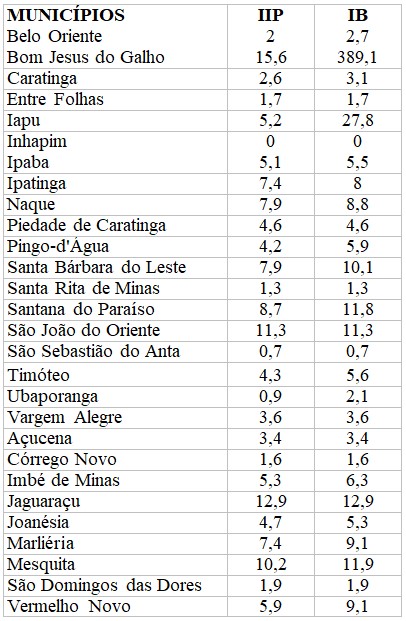 Da regional de Coronel Fabriciano, 17 municípios foram classificados como em situação de risco em relação à infestação pelo Aedes aegypti. Apenas Inhapim, São Sebastião do Anta e Ubaporanga foram considerados em satisfatório. Oito em alerta.