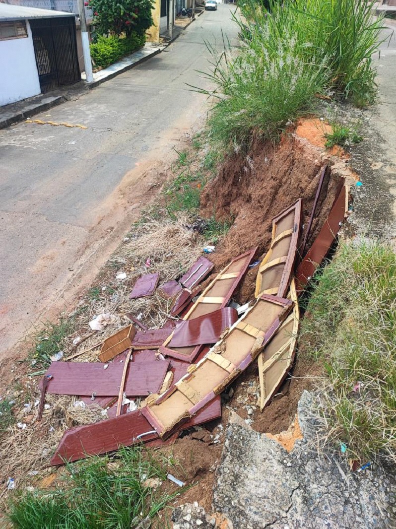 Restos de materiais de construção e móveis devem ser descartados através de empresas que realizam coleta de entulhos. Aquelas pessoas que virem qualquer descarte irregular podem realizar a denúncia através do telefone (33) 3329-8051.
