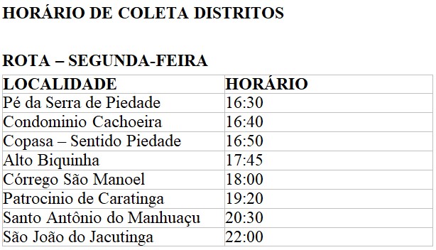 Confira os horários de coleta de lixo em Caratinga: