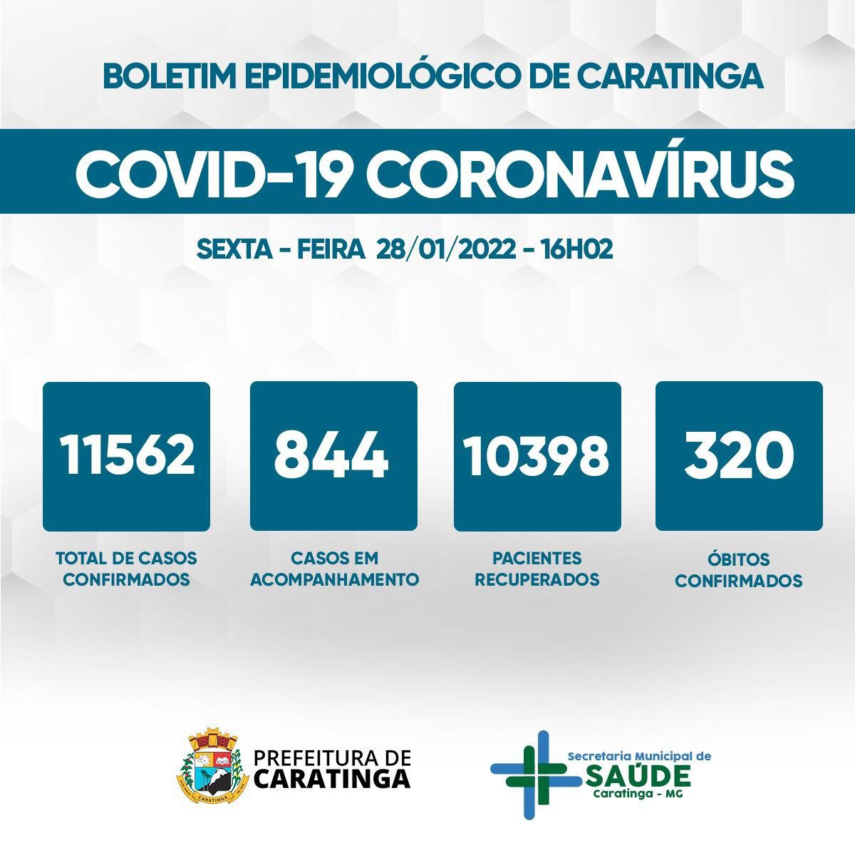 CARATINGA – De acordo com boletim epidemiológico emitido pela Secretaria Municipal de Saúde, entre quinta-feira (27) e sexta-feira (28), mais 154 casos de covid foram registrados em Caratinga, chegando a 11.562 casos confirmados. No boletim anterior esse número era de 11.408.