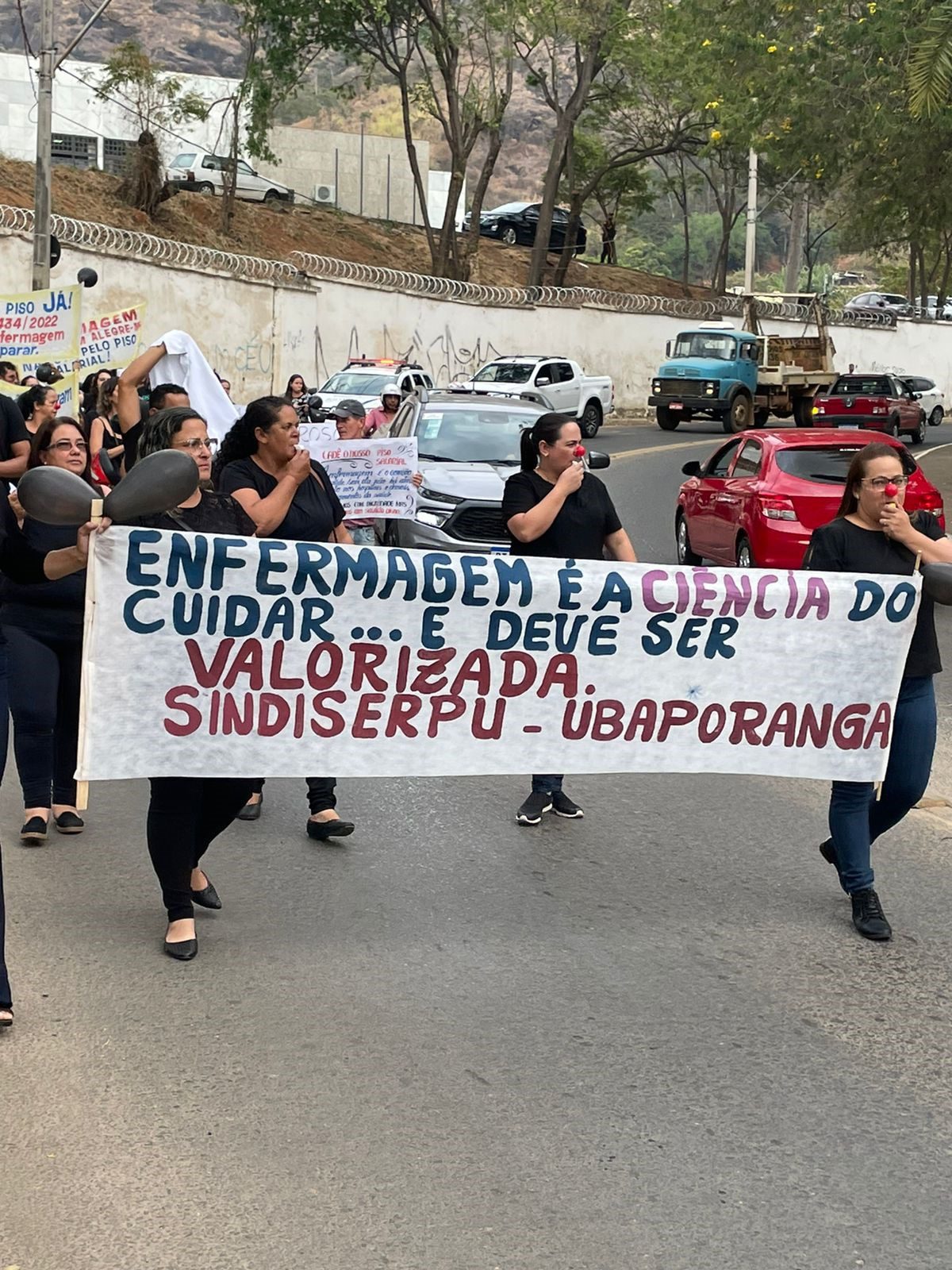 Miriam Cota, que é profissional de enfermagem, classificou como lastimável e vergonhoso ter que lutar por algo que é “de direito”. “A enfermagem é a única profissão que passa 24 horas por dia ao lado da paciente, a única profissão que está presente desde o momento do nascimento até o momento da morte. Acho vergonhoso, não tenho palavras para descrever essa atitude do STF, querendo legislar, não sei de onde tiraram a ideia que podem legislar e suspenderam o piso por 60 dias. Imaginem vocês se a enfermagem suspender o serviço por seis horas, que caos que seria. Quantas vidas se perderiam? Mas, nós não somos irresponsáveis, não somos iguais a eles, trabalhamos com amor. Mas, o amor não paga nossas contas, precisamos no mínimo de respeito, de um salário digno. Não estamos pedindo nada demais. Estranhamente aumenta-se salário de ministros, deputados, governadores e a enfermagem não pode ter um piso? Isso é um absurdo. Só vamos parar quando o piso estiver no nosso contracheque. Enfermagem unida não será vencida. Em Vargem Alegre tivemos o apoio da nossa prefeita, ela não se opôs em nenhum momento, isso fortalece a luta”.