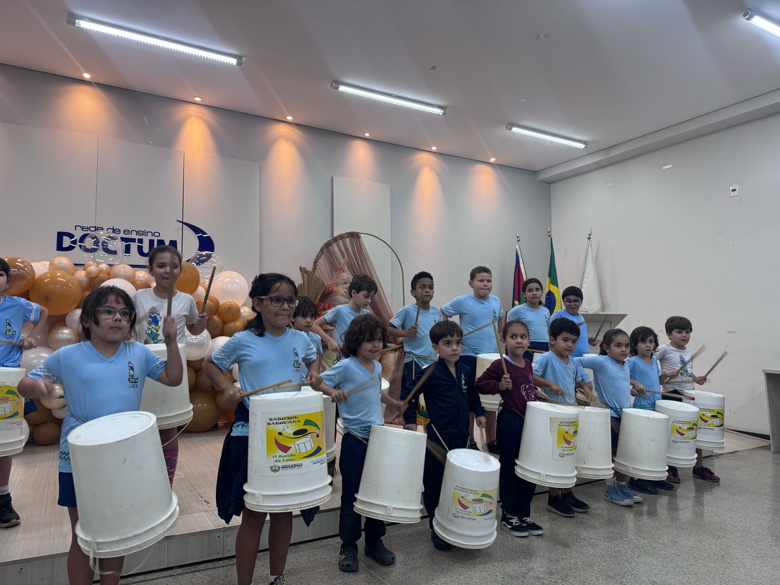 A programação contou ainda com a apresentação da banda Batuque Batucada, sob a direção do professor Veveto Brasil. O grupo envolveu o público com sua performance vibrante, que levou todos a acompanharem o ritmo com empolgação.