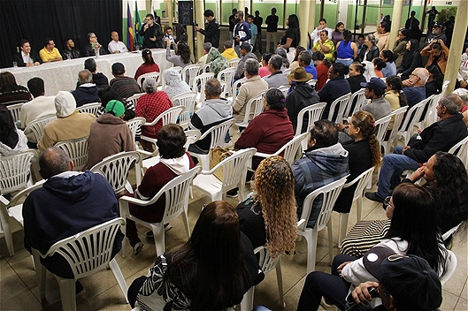 CARATINGA – O pátio e o espaço do refeitório da Escola Estadual Coronel Florentino Miranda Costa, no distrito de Sapucaia, em Caratinga, ficaram lotados na noite desta quinta-feira (30/7). Mais de 200 pessoas estiveram no local para uma reunião com o prefeito Dr. Giovanni Corrêa para entrega de escrituras do programa “Morar Legal”, através do qual serão regularizados mais de 11 mil lotes em toda a cidade.