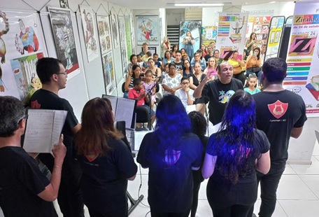 O momento foi devidamente abrilhantado com a apresentação do Coral São João Batista para deleite dos pais, familiares, amigos e representantes de escolas que compareceram em grande número a Casa Ziraldo de Cultura para parabenizar, comemorar com os vencedores, e prestigiar a mostra, que foi aberta ao público no dia 18, e se encerra hoje, às 17 horas.