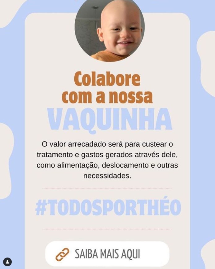 Essa vaquinha é para o auxílio dos custos da família com deslocamento, alimentação, entre outras necessidades que poderão surgir durante todo o tratamento, visto que os pais são professores de educação física e estão afastados do trabalho por conta dos riscos de infecções para o pequeno Théo.