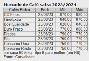 As lideranças dos cafeicultores falam que o tamanho da produção deste ano é maior do que a de 2022, mas longe de se constituir em uma grande safra. “Em nossa opinião, se a nova safra brasileira mostrasse números como os citados pelos compradores no exterior, os trabalhos de colheita (que começaram mais tarde este ano, em razão da maturação irregular dos frutos e das dificuldades que os cafeicultores encontraram para contratar mão de obra para executar esses serviços) não estariam se aproximando do final em meados do mês de agosto. Os armazéns já estariam com mais café, e os cafeicultores mais propensos a vender”, apontou ao Escritório Carvalhaes, sediado em Santos/SP.