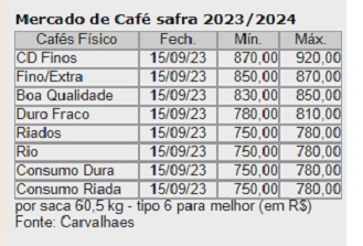 A previsão de tempo seco e muito quente no decorrer dessa semana sobre as regiões produtoras de café do sudeste brasileiro, com o calor novamente se intensificando, e as temperaturas máximas devendo ultrapassar 35 °C no período da tarde em diversas regiões, criando condições para a perda de parte das floradas, que abriram cedo demais este ano, em consequência de chuvas não esperadas para esta época do ano, levou a uma forte alta das cotações do café nesta semana.