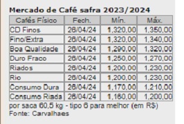 No mercado físico brasileiro, os compradores alteraram as bases de preços diariamente no decorrer da semana, acompanhando o “sobe e desce” das cotações em Nova Iorque e do dólar frente ao real. O volume de negócios fechados recuou em relação à semana passada. Nestes primeiros meses de 2024 esse volume vem crescendo, mas sempre com negociações difíceis, atrapalhadas pelo “sobe e desce” nas cotações na ICE e pelas incertezas climáticas, que preocupam e trazem muita insegurança aos cafeicultores.