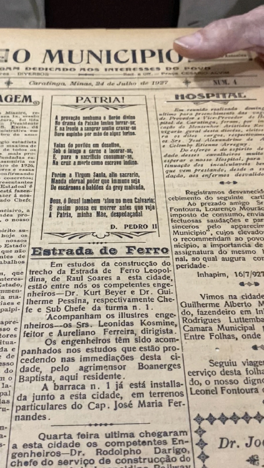 José Aylton conta que o Nudoc também apresenta acervos de jornais antigos, relatando fatos importantes na cidade de Caratinga. “É algo muito interessante, porque a cidade se sente enriquecida com o material que está aqui. Tenho, por exemplo, um dos jornais mais velhos que foi publicado em Caratinga, que se chama “O Município”. Foi publicado o primeiro número em 24 de julho de 1927 e seguiu até 1952, se não me falha a memória. Essa é uma riqueza que a gente tem aqui, uma coleção que só existe outra similar no arquivo público mineiro em Belo Horizonte, não existe outro. Uma outra coleção idêntica, também nós temos aqui oferecido pelo Carraro, todos os jornais “A Semana”. Estão também aqui arquivados e o Jornal Caratinga, a verdade dos fatos, do nosso saudoso Humberto Salustiano Costa, ele doou para cá todos os volumes, um acervo que nenhum lugar na cidade tem igual. E o Diário de Caratinga que não pode faltar também”.