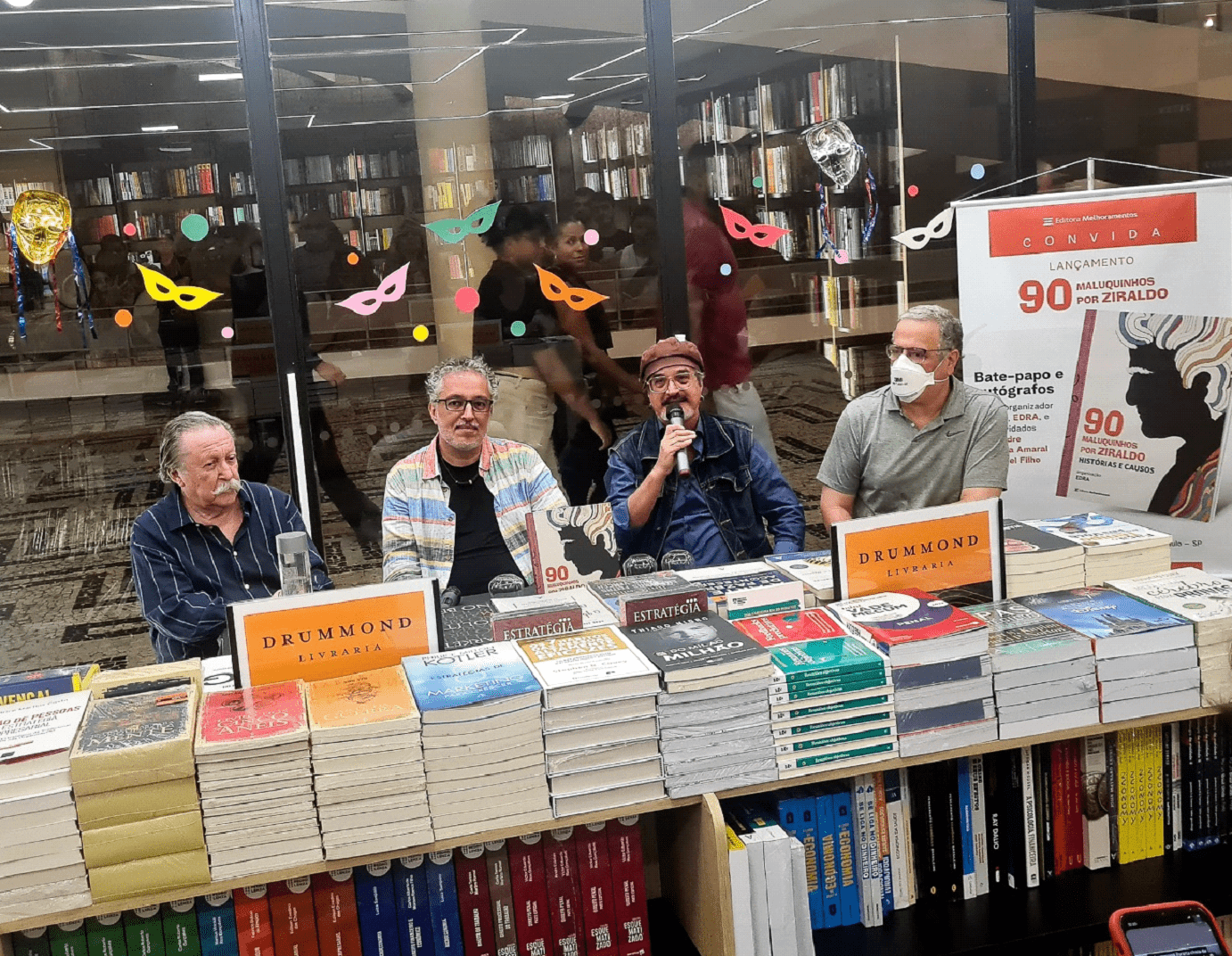 SÃO PAULO – Um encontro entre amigos e fãs de Ziraldo, um dos ícones do humor gráfico e da literatura brasileira. Este foi o espírito do evento que aconteceu no último sábado, 11 de fevereiro, no lançamento do livro “90 Maluquinhos por Ziraldo – Histórias e Causos”, organizado pelo cartunista Edra e lançado pela Editora Melhoramentos, casa do pai do Menino Maluquinho há mais de cinco décadas. A Livraria Drummond, da Avenida Paulista, em São Paulo, deu continuidade às comemorações dos 90 anos do cartunista, escritor e mais de uma dezena de adjetivos. Edra e três escritores participantes – Pedro Bandeira, Alexandre Coimbra Amaral e Manuel Filho, depois de um animado bate-papo, comandaram uma disputada sessão de autógrafos.