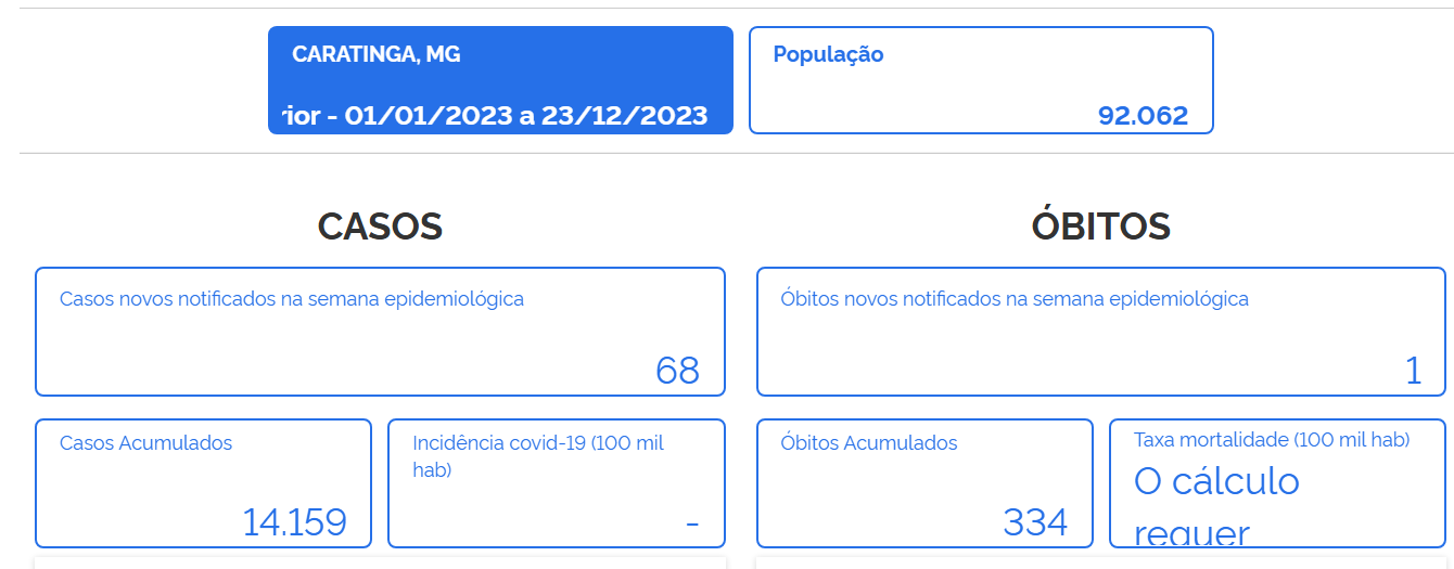 O triste saldo desta doença é que até 31 de dezembro de 2023, Caratinga 14.159 casos e 334 mortes. A pandemia da covid foi considerada encerrada em maio daquele ano pela Organização Mundial da Saúde.
