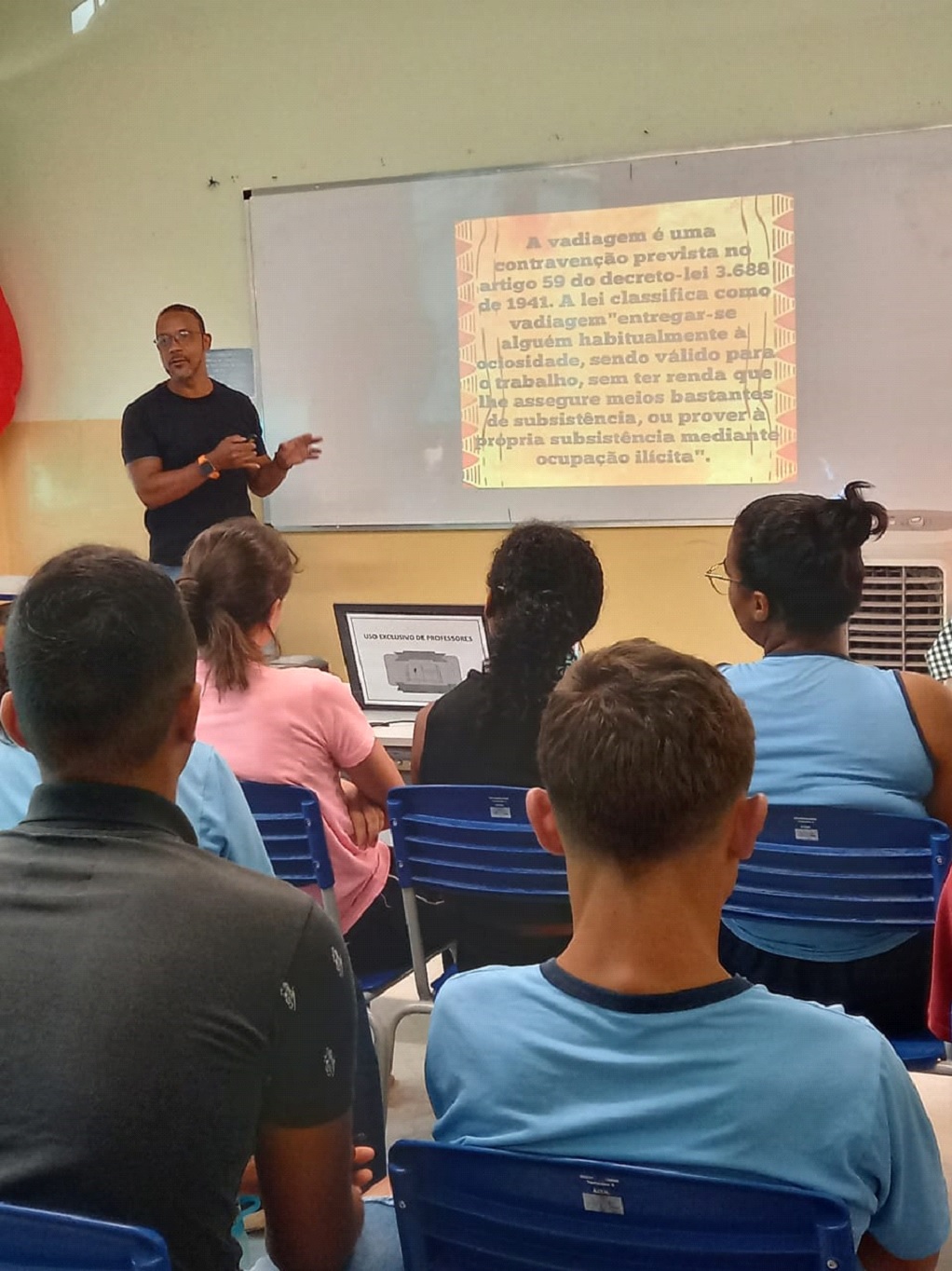 Atentos, os alunos ouviriam do palestrante, sobre a origem do racismo, suas causas e a importância de políticas públicas de inclusão. Rogério Silva falou letramento racial. “O letramento racial é um processo de reeducação racial que reúne um conjunto de práticas com o intuito de desconstruir formas de pensar e agir naturalizadas e normalizadas socialmente, em relação a pessoas negras e pessoas brancas”, explicou.