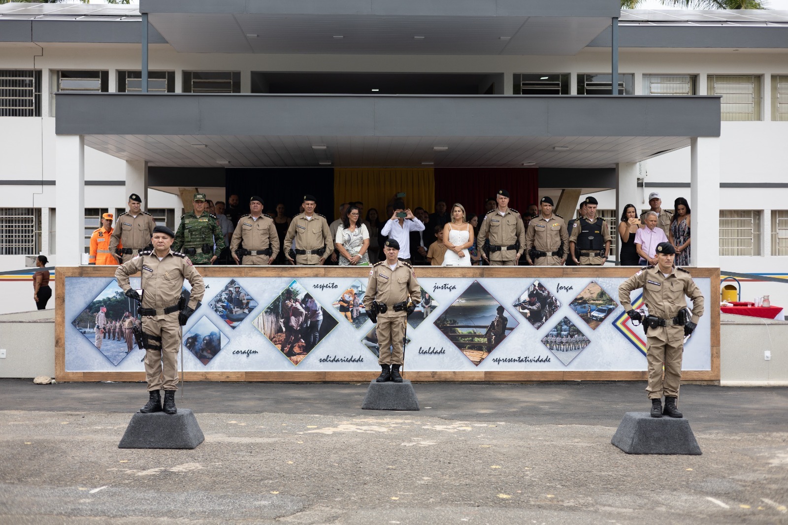 A cerimônia foi presidida pelo comandante da 12ª Região de Polícia Militar, coronel Lemos Dias, e muito prestigiada por autoridades dos municípios que compõem a área do 11º BPM, além de comandantes dos batalhões de Caratinga, Ponte Nova, Ipatinga, Coronel Fabriciano e companhias PM Independentes de Meio Ambiente e Trânsito da 12ª RPM. Estiveram também presentes na cerimônia representante do 14º Batalhão de Polícia Militar do Estado do Espírito Santo, chefe da Delegacia de Polícia Rodoviária Federal de Governador Valadares, representantes do Poder Judiciário e Ministério Público, da 2ª Cia de Bombeiros Militar e da 6ª Delegacia Regional de Polícia Civil, além de diversos ex-comandantes do 11º Batalhão, representantes da sociedade civil organizada, familiares e amigos dos comandantes.