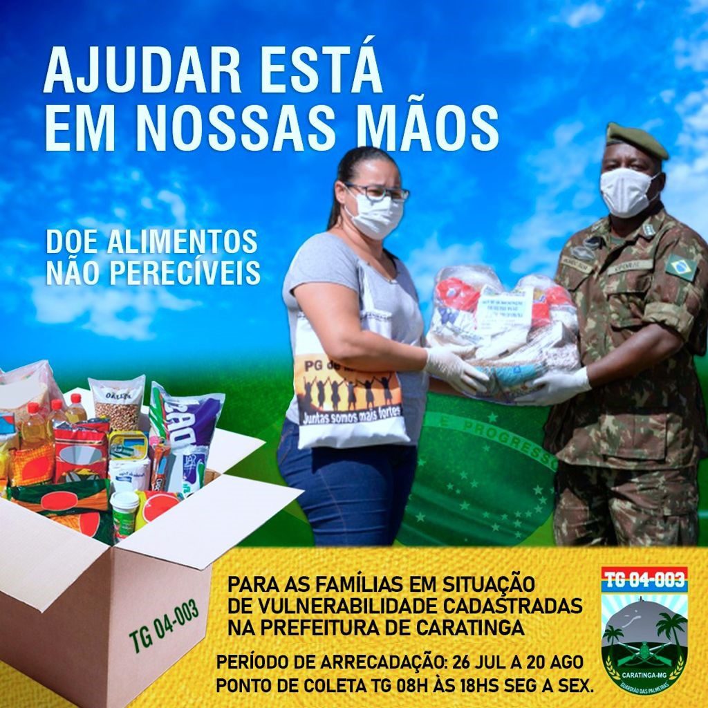 O subtenente Wildsley aproveitou para falar da ação social que está sendo realizada pelo Tiro de Guerra 04/003, “Ajudar está em nossas mãos”. “Um dos ensinos que passamos aos atiradores é serem solidários, quem saiam daqui com essa mentalidade, e diante de uma situação de pandemia que estamos vivendo as famílias carentes, que estão em situação de vulnerabilidade, e são cadastradas na prefeitura de Caratinga, na secretaria de Ação Social, serão contempladas. Iniciamos a arrecadação e durante essa semana estamos na reta final. Pedimos à população que seja solidária, o ponto de coleta é no tiro de guerra de 8h às 18h”, concluiu o chefe de instrução do TG.