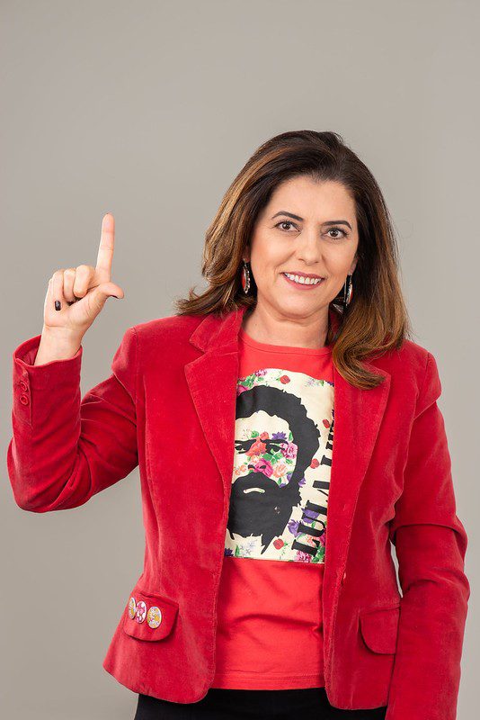 Também sou candidata pra ajudar Lula. Porque quando ele ganhar vai ter que fazer uma mudança radical nesse país. Como vamos continuar com o país com a taxa de juros na altura que está? Com preço do combustível dolarizado, estamos pagando gasolina a R$ 8,00 na bomba, em dólar, o salário do trabalhador é em real. Uma discrepância total, vamos ter que rever a reforma trabalhista, tudo que construímos na constituição de 86, aliás, tudo que foi construído a era Vargas. A nossa CLT está acabando, hoje em dia ter carteira assinada é quase um luxo, porque se institui uma no profissão no Brasil que é o MEI, isso é a ‘uberização’ do trabalho, então todo mundo hoje tem um MEI. Então você pode dizer assim, “a minha empregada doméstica ela é empresária, porque não assina a carteira dela, ela tem um empresa”. É um absurdo. Quem trabalha com entrega de comida, iFood, é a mesma coisa. Então essas pessoas trabalham numa moto, que vocês sabem como é acidente de moto no Brasil, se ele morre, ele não deixa nada, não tem contribuição previdenciária; se sofre um acidente não tem auxílio-benefício, não pode ficar encostado com a perna quebrada. Estamos perdendo tudo, vamos ter que rever o direito dos trabalhadores. Estou falando rever direitos do povo, porque sem direitos o povo não caminha.