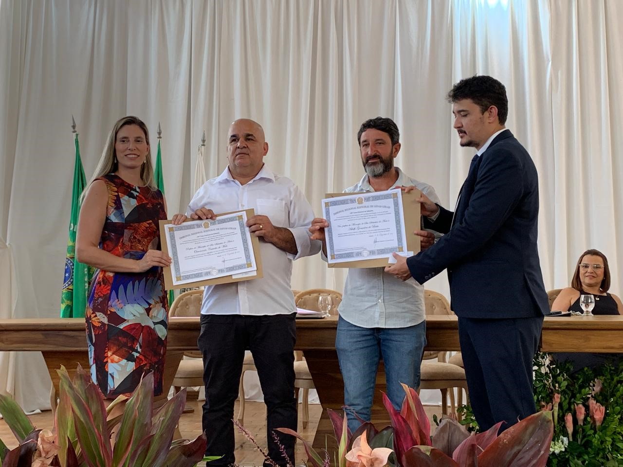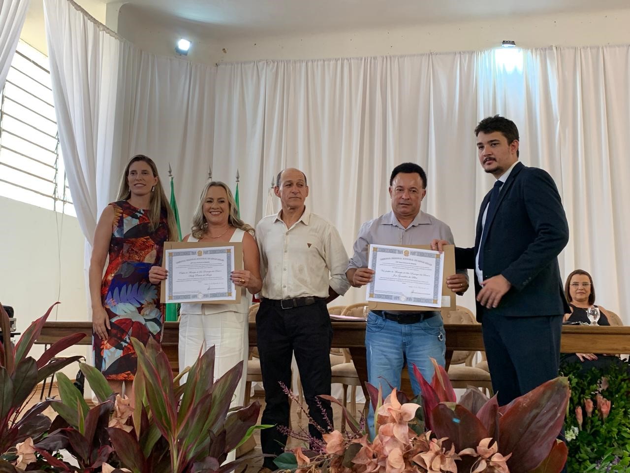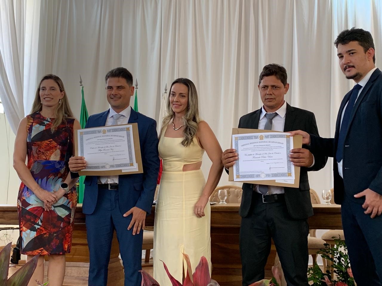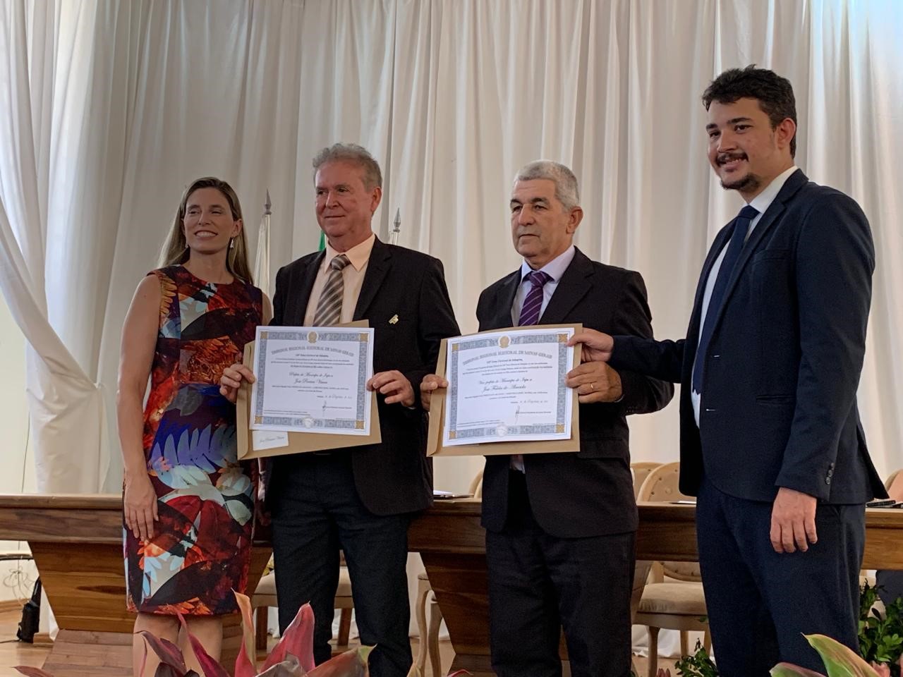 INHAPIM – Na tarde dessa segunda-feira(9), os prefeitos, vices e vereadores eleitos na comarca de Inhapim foram diplomados pela justiça eleitoral. O evento aconteceu na sede do paço municipal. Fazem parte da comarca, os municípios de Inhapim, São Sebastião do Anta, São Domingos das Dores, São João do Oriente e Iapu. Os diplomas foram entregues pela juíza Larissa Teixeira da Costa e pelo promotor Jonas Junio Linhares Costa.