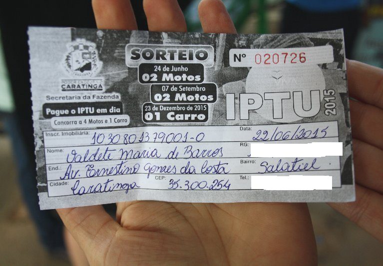 Para concorrer ao prêmio é só apresentar o comprovante de pagamento do IPTU na Central de Atendimento ao Cidadão. “Quem pagou em cota única teve direito a dez cupons e quem paga parcelado recebe um cupom por cada parcela paga”, esclarece Janaína.