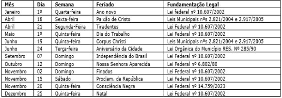 DA REDAÇÃO- A Prefeitura de Caratinga divulgou decreto que dispõe sobre os feriados nacionais, religiosos e municipais e disciplina os dias de ponto facultativo para o exercício de 2025.