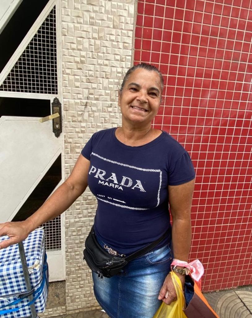 Rosameire Fonseca do Vale Lopes, 55 anos, é casada, tem um filho de 14 anos, o marido está sofrendo de depressão e ela tenta driblar a crise vendendo salgados nas ruas, isso quando os problemas de coluna não impedem.
