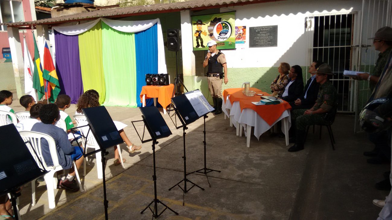 Durante a solenidade os alunos fizeram apresentações musicais e receberam o certificado por terem concluído com aproveitamento o Programa, assumindo a responsabilidade de preservar o meio ambiente e manter o equilíbrio ecológico. Fizeram o uso da palavra e ressaltaram a importância do programa, Maria Cristina de Freitas, diretora da Escola Dr. Maninho; Maria das Graças Santos, a ‘Mariinha’, diretora do Departamento de Educação Ambiental; e o capitão Maiquel Vecce dos Santos, subcomandante da 12ª Companhia PM Independente de Meio Ambiente e Trânsito Rodoviário com sede em Ipatinga.