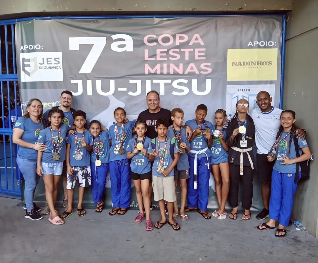 DA REDAÇÃO- No último dia 1º de dezembro, o Projeto Cristo em Ação, em parceria com a equipe Black Norte, participou da 7ª Copa Leste de Minas de Jiu-Jitsu, realizada no Ginásio Poliesportivo Iorque José Martins, em Timóteo. Sob a liderança do professor faixa marrom Gabriel Pereira, responsável pela equipe de Jiu-Jitsu do Projeto, 11 atletas competiram e conquistaram um feito memorável: 11 medalhas — 4 de ouro, 3 de prata e 4 de bronze.