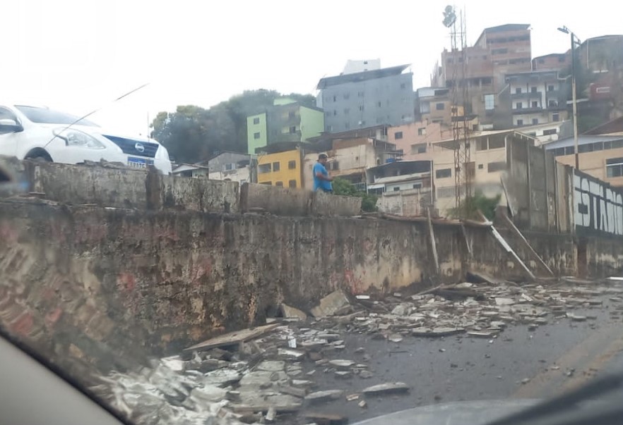 Durante a chuva de granizo e ventania, houve a queda de muro do campo Caratinga. Não relatos sobre feridos.